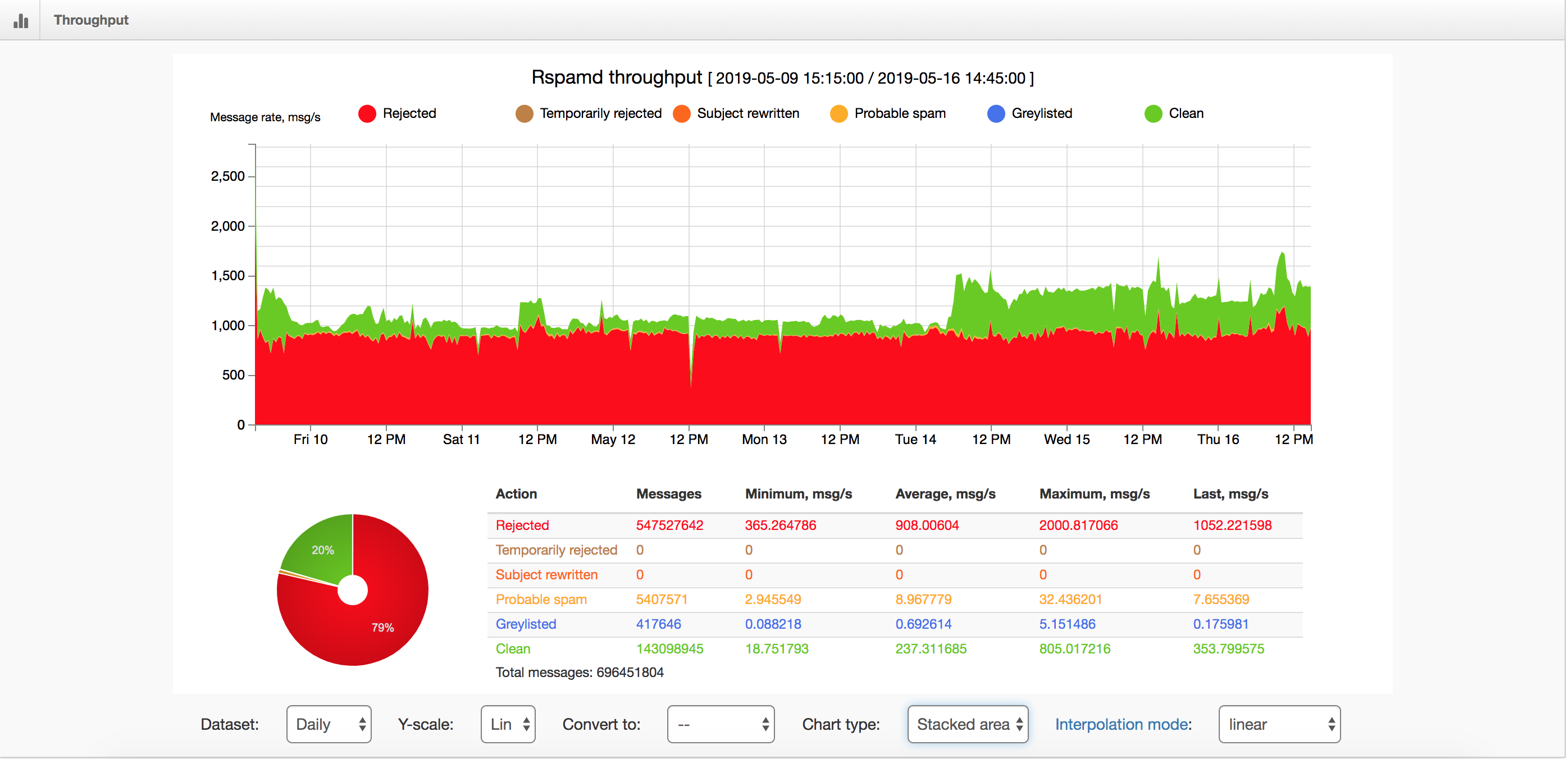 It means that over 10 seconds Rspamd has to process around 15 thousands of messages which gives us a rate of 1500 messages per second.