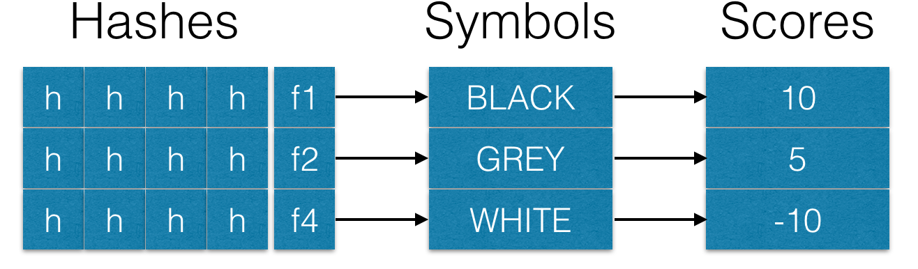 Flags enable the storage of hashes from different sources. For example, a hash may originate from a spam trap, another hash may be the result of user complaints, and a third hash may come from emails on a whitelist. Each flag can be associated with its own symbol and have a weight when checking emails: